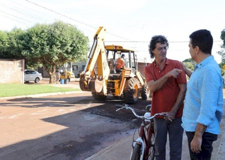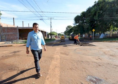 A Prefeitura de Dourados, por meio da Secretaria Municipal de Obras Públicas (Semop), segue ampliando as frentes de recuperação asfáltica em diferentes regiões da cidade. Nesta quarta-feira (29), o prefeito Marçal Filho acompanhou de perto os trabalhos no Jardim Santa Brígida, um dos bairros contemplados nesta etapa, já que apresentava vias com desgastes em razão do tempo de uso do asfalto, com o pavimento comprometido em diversos pontos.